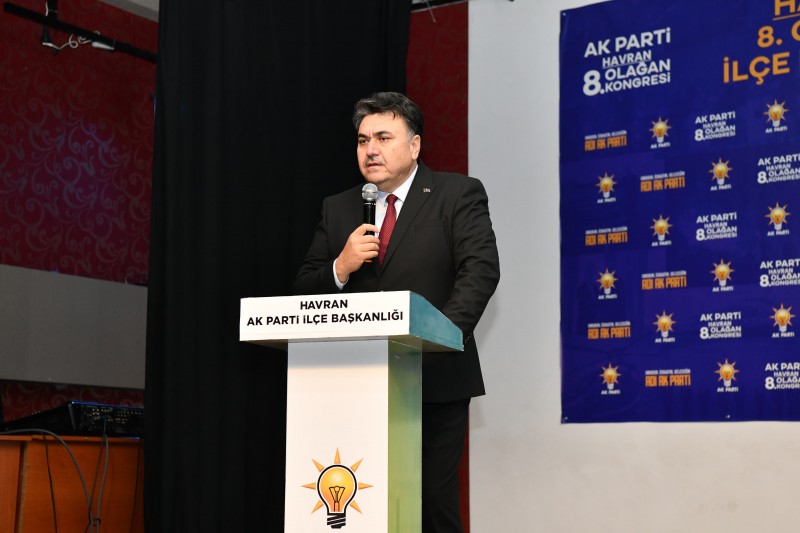 AK Parti İl Başkanı Mehmet Aydemir, Havran İlçe Kongresi'nde yaptığı konuşmada, AK Parti teşkilatlarının birlik ve beraberlik ruhunu vurguladı. Aydemir, AK Parti'nin büyük bir aile olduğunu belirterek, "Hepimiz bu davaya inanmış, Türkiye'nin aydınlık yarınları için mücadele eden büyük bir ailenin fertleriyiz. Kongreler bizim için siyasi bir yarış değil, bir şölendir. AK Parti'de kongre demek, birlik ve beraberlik demektir. Değerli dava arkadaşlarım, bugün buradan daha güçlü bir teşkilat olarak çıkacağız. Liderimiz Recep Tayyip Erdoğan'ın çizdiği yolda milletimizin beklentilerini karşılayacak adımları hep birlikte atacağız," dedi.