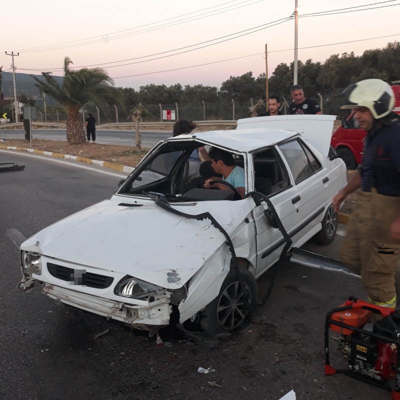 Balıkesir’in Erdek ilçesindeki trafik kazasında refüjü geçen araç takla atarak karşı şeride savruldu. Meydana gelen kaza sonucu kullanılamaz hale gelen otomobilin içinde bulunan 2 kişi hafif yaralandı.