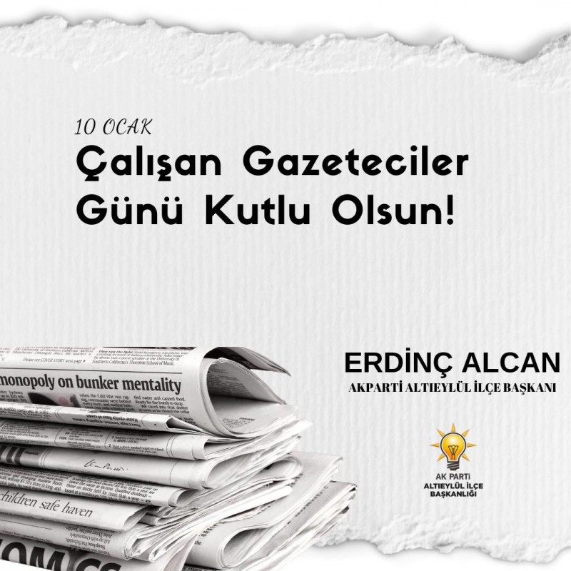 AK Parti 6 Eylül İlçe Başkanı Erdinç Alcan’dan “10 Ocak Çalışan Gazeteciler Günü” kutlama mesajı
