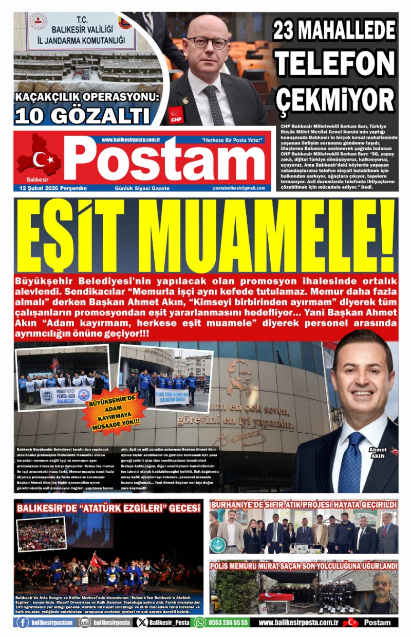 Büyükşehir Belediyesi'nin yapılacak olan promosyon ihalesinde ortalık alevlendi. Sendikacılar “Memurla işçi aynı kefede tutulamaz. Memur daha fazla almalı” derken Başkan Ahmet Akın, “Kimseyi birbirinden ayırmam” diyerek tüm çalışanların promosyondan eşit yararlanmasını hedefliyor… Yani Başkan Ahmet Akın “Adam kayırmam, herkese eşit muamele” diyerek personel arasında ayrımcılığın önüne geçiyor!!!