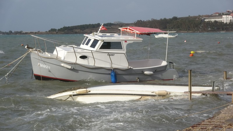 Meteorolojiye göre, dün öğleden sonra başlayan ve güney yönlerinden saatte 50 ile 75 kilometre esen, ani ataklarla zaman zaman 100 kilometre hıza ulaşan fırtına Ayvalık sahil şeridindeki bazı küçük balıkçı teknelerini batırdı.