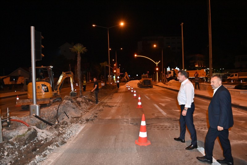 Balıkesir Büyükşehir Belediye Başkanı Yücel Yılmaz gecenin ilerleyen saatlerinde çalışmaları yerinde inceledi. Perşembeyi Cumaya bağlayan gece yolun trafiğe açılacağını belirten Başkan Yılmaz, “Ekiplerimiz Gar Meydanı’nda hummalı bir çalışma yürütüyor. Planladığımız gibi gece boyunca trafiği belirli bir süre kapatıp çalışmalarımızı sürdürüyoruz. Bir yandan asfalt atılmış yere şerit çekilmişken diğer yandan da trimer kazısı ve asfalt yenileme, yağmur suyu hatlarının organizasyonu yapılıyor. Balıkesir’imiz daha güzel olsun diye belediyemiz 24 saat hizmette” dedi. (Balıkesir Büyükşehir Belediyesi)