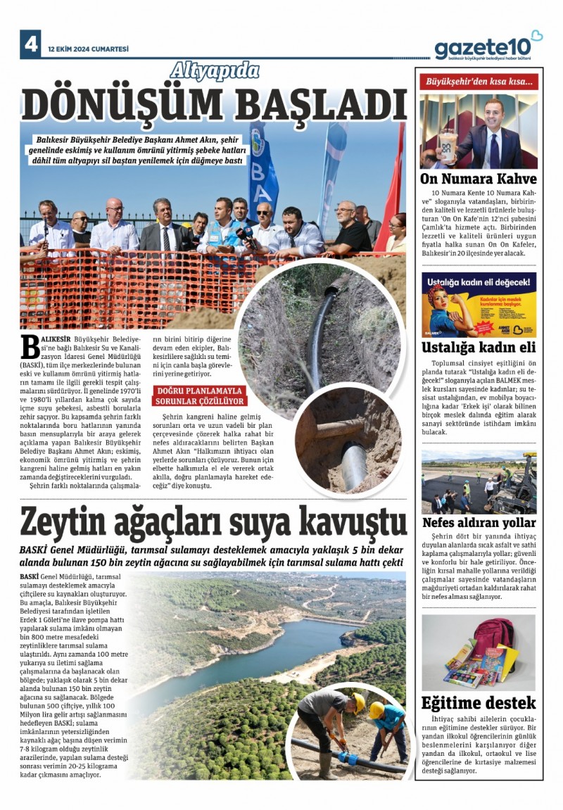 “Benim en büyük isteğim Balıkesir Ailemin hayırlı evladı olabilmek” diyerek çıktığı yolda hemşehrilerine her zaman en iyi hizmeti sunmak adına çalışmalarını gerçekleştiren Başkan Ahmet Akın “Gazete10 haftalık dijital haber bültenimiz hayırlı olsun. Hizmet ve projelerimizi vatandaşlarımıza duyurma noktasında hız ve kolaylık sağlayacak olan bültenimiz, hepinizin bir tık uzaklığında olacak. İyi okumalar” ifadelerini kullandı.