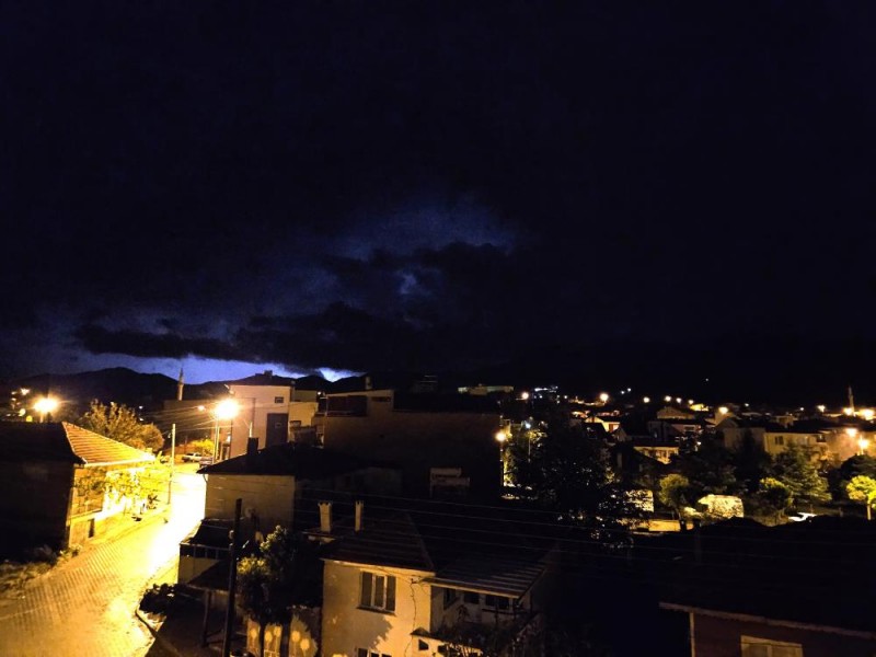 Balıkesir’i etkisi altına alan yağış ve lodos Sındırgı ilçesinde de etkisini gösterdi. Gündüz saatlerinde başlayan lodos ve yağmur gece saatlerinde etkisini arttırdı. Ardı ardına çakan şimşekler ise geceyi gündüze çevirdi. Sağanak yağış ve gökyüzünün aydınlığı cep telefonu kamerasına yansıdı. (İHA)