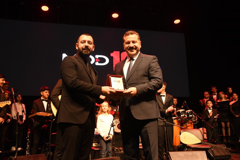 MOD10 Gençlik Orkestrası’na maddi ve manevi olarak destek veren ve gençlerin söylediği şarkılara enstrüman çalarak eşlik eden Balıkesir’in sevilen iş insanları; Fahri Ermişler, Cem Soydan, Birol Sandıkçıoğlu, Hasan Sarp Arıcılar’a ve Büyükşehir Belediyesi Konservatuarı Sanatçısı Ayhan Erden’e, Büyükşehir Belediyesi Meclis Üyesi Mehmet Birol Şahin, İl Emniyet Müdürü Hasan Yiğit, Vali Yardımcısı Ömer Faruk Günay, MHP İl Başkanı Niyazi Tunç, Büyükşehir Belediyesi Genel Sekreteri Dr. Mustafa Küçükkaptan tarafından plaket takdim edildi.
