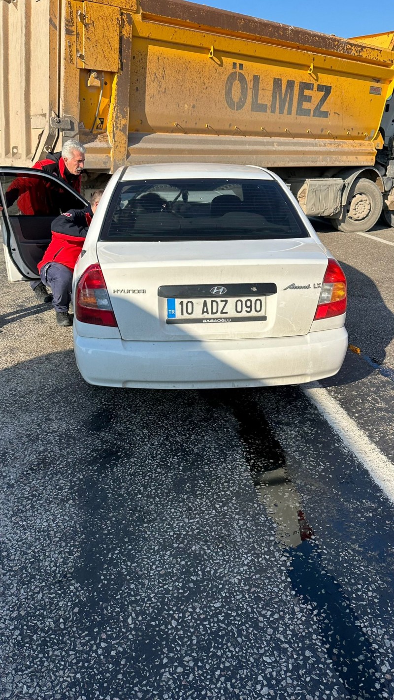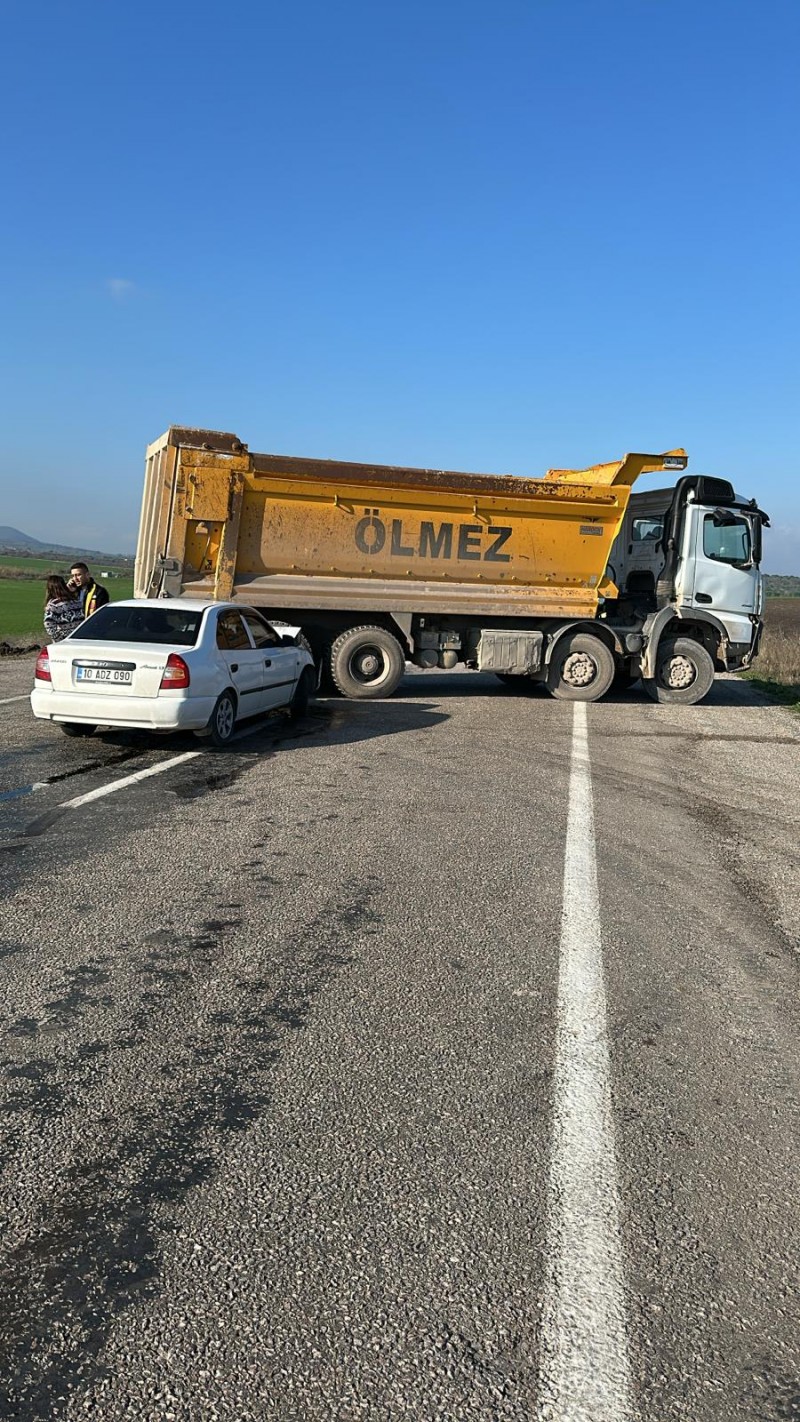 Gönen Manyas Karayolu Akcaova Mevkiinde saat 11:13 sularında 10 ADZ 090 plakalı otomobilin 21 AT 720 plakalı kamyona arkadan çarpması sonucunda meydana gelen trafik kazasına Balıkesir itfaiyesi müdahale etti.