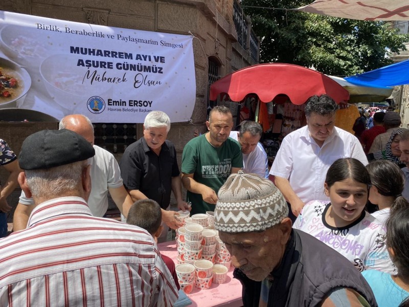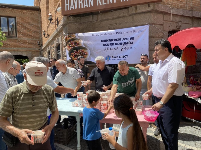 Havran Belediyesi tarafından Camikebir Cami önünde yapılan hayra vatandaşlar büyük ilgi gösterdi. Havran Belediye Başkanı Emin Ersoy kendisi tezgah başına geçerek vatandaşlara aşure ikram etti. Başkan Ersoy “Aşure; paylaşmanın, beraberliğin, kardeşliğin ve dayanışmanın simgesidir. Belediyemiz tarafından her yıl Muharrem Ayında geleneksel olarak düzenlediğimiz aşure hayrı Camikebir Camii önünde yapıldı. Yapılan aşure hayrımızın kabul olmasını dileriz.” dedi.