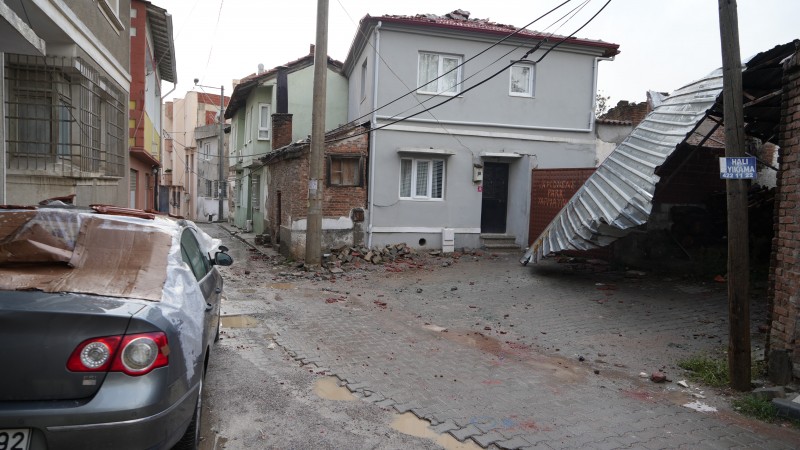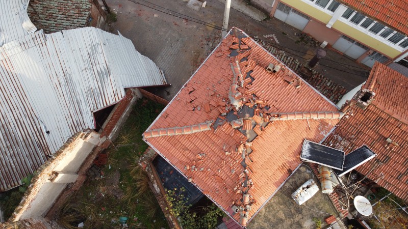 Görgü şahitleri ise rüzgarın saniyeler içinde hortuma dönüştüğünü ve binaların üzerindeki çatılar sökerek yüzlerce metre öteye uçurduğunu ifade ettiler. Havran ilçesinde yaşanan hortum sonrasında meydana gelen hasar dron ile görüntülendi. (İHA)