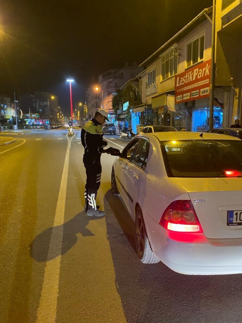 Balıkesir İl Emniyet Müdürlüğü ekipleri "Milli Güvenlik, genel sağlık ve asayiş ile kamu düzeninin sağlanması, suç veya kabahatin işlenmesinin önlenmesi, şüpheliler ile aranan şahısların yakalanması ve suç unsurlarının ele geçirilmesine" yönelik olarak; Umuma açık istirahat ve eğlence yerlerinde Açık alkol satış ve sunum yapan tüm içkili yerler, Dernek ve Kurum Lokalleri, Sosyal Tesisler, Kafe, Kafeterya, Kahvehane, Kıraathane, Elektronik Oyun Yerleri ve Trafiğin yoğun olduğu farklı hareket noktalarında olmak üzere Merkez ve dış İlçelerinde 273 personelin katılımıyla il genelinde yapılan Asayiş, Trafik ve Huzur Uygulamasında; bin 525 şahıs sorgulanmış, 1 aranan şahıs yakalandı. Trafik polis ekipleri 856 aracı denetlerken, 75 araç sürücüsüne toplam 180 bin 339 TL tutarında idari para cezası uygulandı ve 10 araç trafikten men edildi. (İHA)