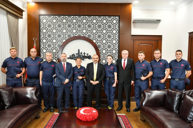 Vali Ustaoğlu, Büyükşehir Belediyesi Genel Sekreteri Mustafa Küçükkaptan, Büyükşehir Belediyesi İtfaiye Daire Başkanı Halil Yılmaz ve beraberindeki heyete ziyaret dolayısıyla teşekkür etti.