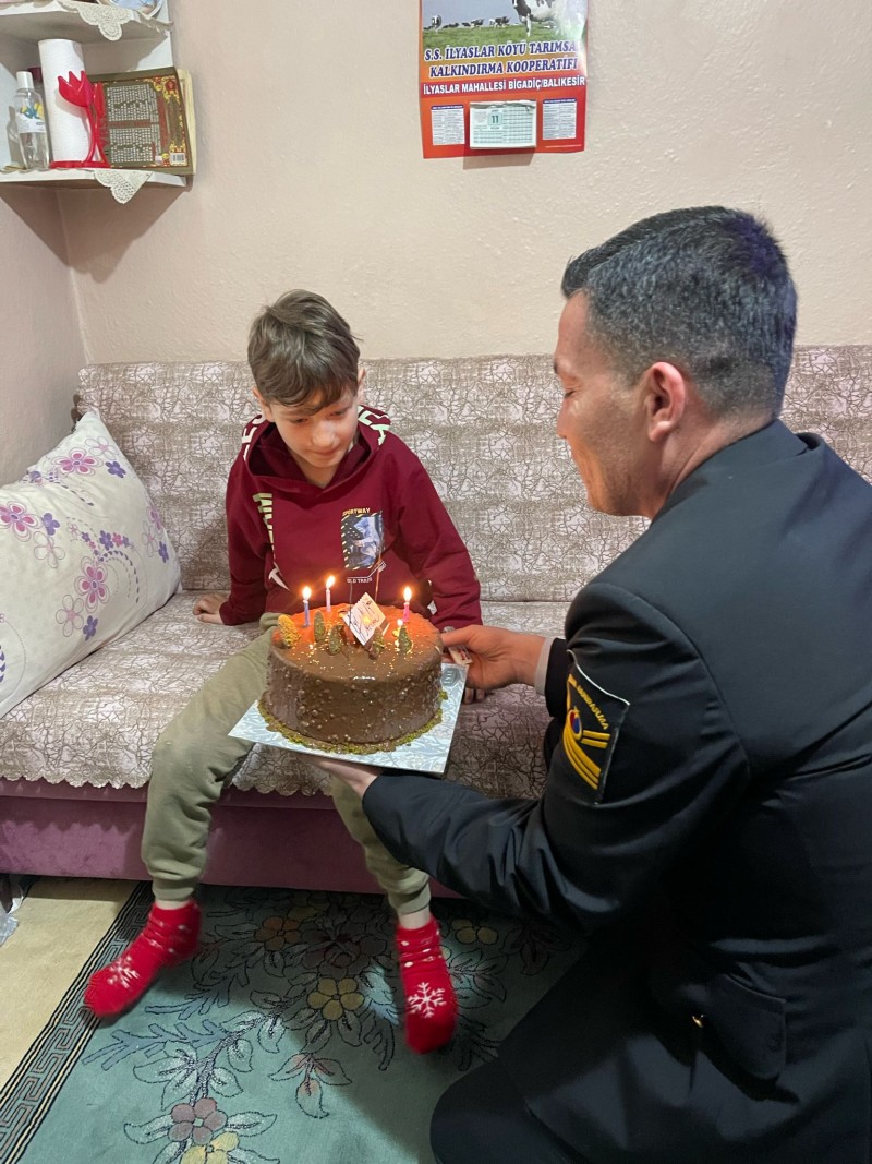 Balıkesir’de Jandarma ekipleri 2017 yılında şehit düşen Jandarma Astsubay Çavuş Niyazi Elçin’in emaneti olan oğlu Metehan Elçin’i 10 yaş doğum gününde yalnız bırakmadı.