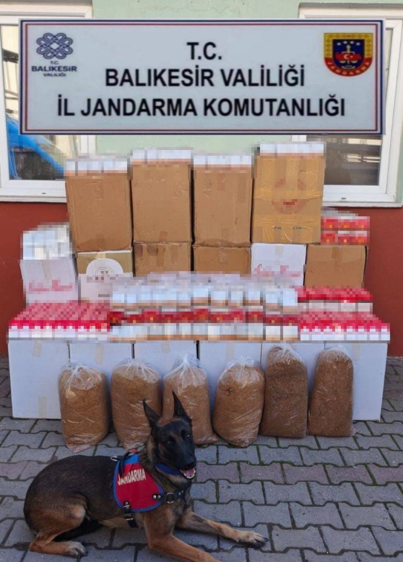 Edinilen bilgiye göre, İl Jandarma Komutanlığınca yürütülen istihbari çalışmalar sonucunda Altıeylül, Dursunbey, Edremit, Erdek, Gönen ve Kepsut ilçelerinde meydana gelen 6 ayrı olaya karışan şüphelilere ait ev, eklenti ve araçlarda yapılan aramalarda; 156 bin 911 dolu makaron, 104 bin 200 boş makaron, 116 kilogram tütün, 20 litre etil alkol, 4 elektronik sigara, 71 adet tarihi eser niteliğinde obje ve 1 adet dedektör ele geçirildi. Operasyonlar çerçevesinde gözaltına alınan 9 şüpheli hakkında adli işlem başlatıldı.