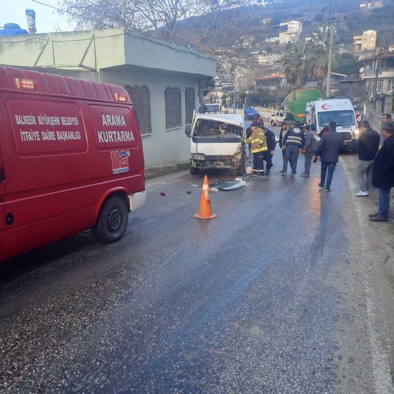 Edinilen bilgiye göre, Erdek istikametine seyir halinde olan 10 AKJ 86 plakalı yem kamyonu, karşı yönden gelen kamyonetle virajda çarpıştı. Kazanın ardından çevredeki vatandaşların ihbarı üzerine olay yerine 112 Jandarma, acil servis ve itfaiye ekibi sevk edildi. Balıkesir Büyükşehir Belediyesi Erdek İtfaiyesi ve sağlık ekipleri, araç içinde sıkışan sürücüyü kurtardı. Yaralı, ambulansla hastaneye kaldırıldı. Kazayla ilgili tahkikat devam ediyor.