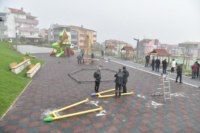 Park alanında çalışmaları inceleyen Karesi Belediye Başkanı Dinçer Orkan, yetkililerden bilgi aldı. Örnek bir park inşa ettiklerini ifade eden Başkan Orkan, “5 bin 421 metrekarelik proje içerisinde yetişkinlerin oturarak sohbet edip zaman geçirebilecekleri Seyir Terası, çocuk oyun alanı ve semt spor sahası bulunan yeşil alan önümüzdeki günlerde açılacak. Yine buna ek olarak yeni semt spor sahaları, halı sahalar ve çocuk parklarının açılışları da devam edecek. Tüm çocuklarımız ve gençlerimizin yararlanması için semt spor sahları ve çocuk oyun alanları inşa ediyoruz. Gerek kırsal, gerekse merkezde bu tip çalışmalarımıza devam ediyoruz” dedi.