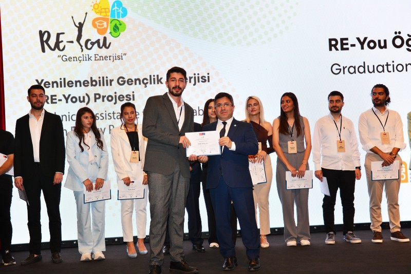Proje kapsamında rüzgar, güneş ve biyogaz güç sistemleri alanına 280 saatlik teorik ve uygulamalı eğitimlerini başarıyla tamamlayan kursiyerler için sertifika töreni ile birlikte düzenlenen Kariyer Fuarı, Balıkesir Avlu Kongre ve Kültür Merkezinde gerçekleştirildi.