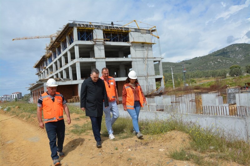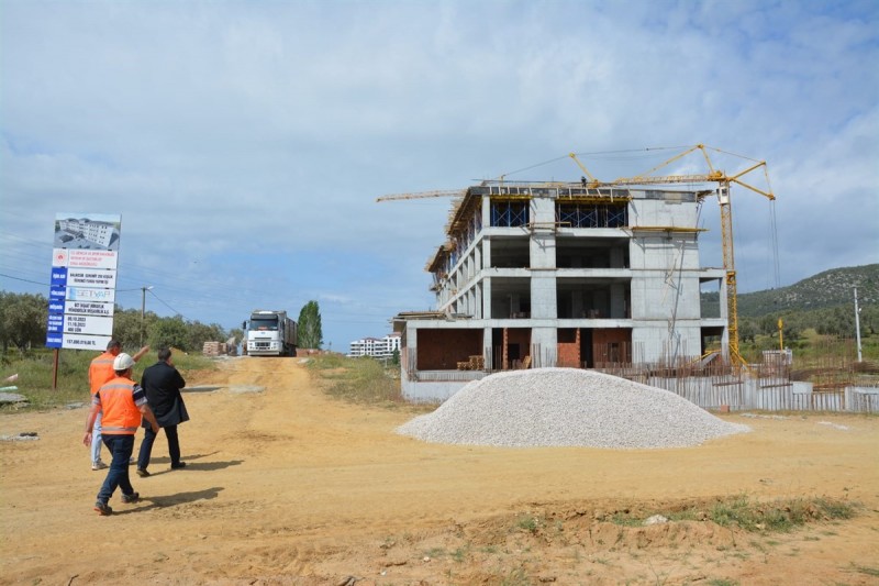 Balıkesir'in Edremit Kaymakamı Ahmet Odabaş, ilçede yapımı devam eden 250 kişilik yükseköğretim öğrenci yurdu yapım işi inşaatında incelemelerde bulundu.