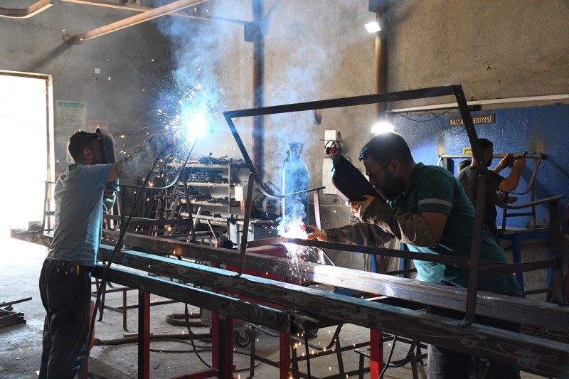 Balya Belediyesi dışarıdan hizmet almadan ve ekstra bütçe ayırmadan parklarda, caddelerde, meydanlarda vatandaşların kullanacakları bankları üretiyor.