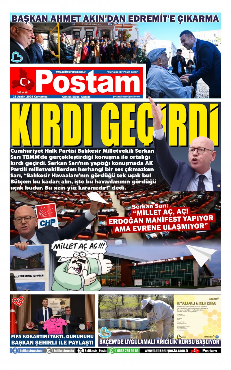 Cumhuriyet Halk Partisi Balıkesir Milletvekili Serkan Sarı TBMM'de gerçekleştirdiği konuşma ile ortalığı kırdı geçirdi. Serkan Sarı'nın yaptığı konuşmada AK Partili milletvekillerden herhangi bir ses çıkmazken Sarı, Balıkesir Havaalanı’nın gördüğü tek uçak bu! Bütçem bu kadar; alın, işte bu havaalanın gördüğü uçak budur. Bu sizin yüz karanızdır!" dedi.
