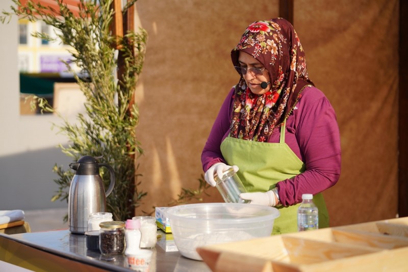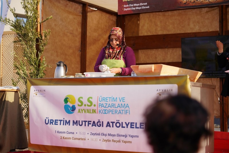 Üretim ve Pazarlama Kooperatifi’nin üretim mutfağı Hasat Festivali’nin ilk ve ikinci gününde yaptığı mutfak atölyeleriyle en lezzetli ürünlerinin tarifini sundu, Ayvalık Mutfağı’nı tanıttı. Ekşi Mayalı Zeytinli Ekmek Yapımı ve kooperatif mutfağına özgü Zeytin Reçeli yapımı atölyelerinde hem ürünlerini yaptılar hem de izleyicilere anlattılar.