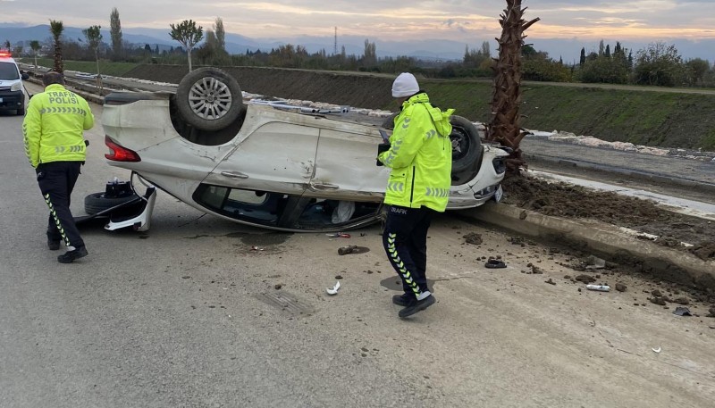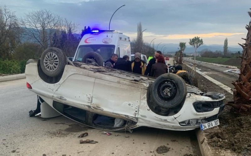 Edinilen bilgiye göre, M.S. yönetimindeki 34 GFA 307 plakalı otomobil, Akçay istikametinden Edremit'e seyir halindeyken Ülkü Yolu mevkiinde direksiyon hakimiyetinin kaybedilmesiyle refüje çarparak takla attı. M.S.’nin yoluna çıkan köpeğe vurmamak için manevra yaptığı ve direksiyon hakimiyetini kaybettiği öğrenildi. Kaza sonrasında bölgeye sağlık ve polis ekipleri sevk edildi. Kazada araç sürücüsü M.S. ve M.A. hafif yaralandı. Yaralılara 112 ekipleri olay yerinde müdahale etti. Kaza ile ilgili soruşturma başlatıldı. (İHA)