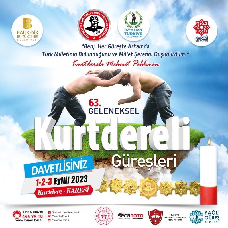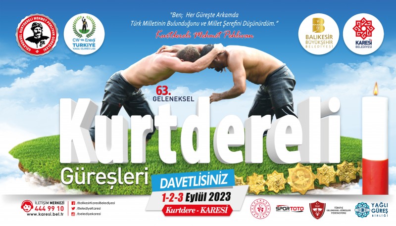 Balıkesir Büyükşehir ile Karesi Belediyesi’nin işbirliğiyle bu yıl 63’üncüsü düzenlenecek olan geleneksel Kurtdereli Mehmet Pehlivan Güreşleri 1 Eylül Cuma günü başlıyor. 3 Eylül Pazar Günü başpehlivanlık ve CW Enerji Türkiye Yağlı Güreşleri Ligi 1. Sezon finallerine evsahipliği yapacak olan güreşlerde 1000’e yakın sporcu er meydanında kıyasıya mücadele edecek.