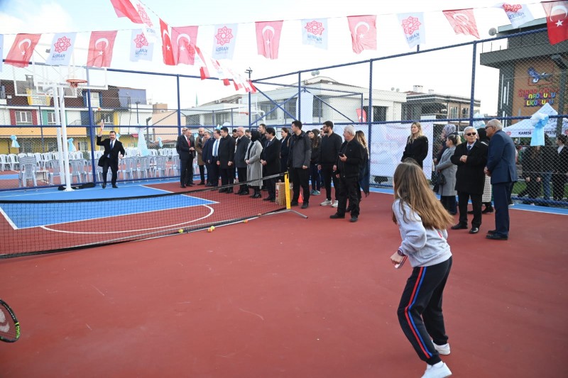 Belediye Başkanı Dinçer Orkan’ın vizyonuyla, vatandaşların ihtiyaçlarını birleştiren Karesi Belediyesi, yeni yatırımların açılışlarını gerçekleştirmeye devam ediyor. Çocuk, genç ve yetişkinlerin spor yapabileceği, sosyal aktivitelerini gerçekleştirebileceği Okullar Bölgesi’nde yeralan Maltepe Mahallesi Semt Spor Sahası düzenlenen tören ile hizmete alındı. Saygı Duruşu ve İstiklal Marşı’nın okunmasıyla başlayan açılış töreninde Akrobatik basketbol gösterisi sunuldu. Davetli ve katılımcıların ilgiyle izlediği gösteri de davetlilerde gösterinin parçası olarak, gösteriye eşlik ettiler.