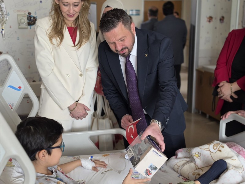 AK Parti Balıkesir İl Başkanı Mehmet Aydemir, 23 Nisan Ulusal Egemenlik ve Çocuk Bayramı dolayısıyla Atatürk Şehir Hastanesi’nde tedavi gören çocukları ziyaret etti.