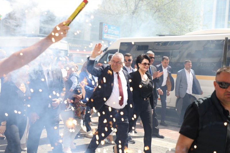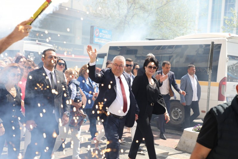 Edremit Belediye Başkanı Mehmet Ertaş, CHP Edremit İlçe Başkanı Emin Yalçıntaş, Meclis Üyeleri ve çok sayıda vatandaş CHP Edremit İlçe Örgütü’nde toplandı. Sancaklar, bayraklar ve bando eşliğinde kortej yürüyüşü ile belediye hizmet binasına kadar yürüdüler. Belediye hizmet binası önünde çok sayıda vatandaş Başkan Ertaş’ı büyük bir coşku ile karşıladı. Edremit Belediyesi Halk Oyunları ekibinin gösterisinin ardından başkanlık makamına geçen Başkan Mehmet Ertaş, görevi sona eren Belediye Başkanı Selman Hasan Arslan tarafından çiçekle karşılandı. Görevi devralan Başkan Ertaş, bugüne kadar görev yapan tüm belediye başkanlarına ve çalışanlara hizmetlerinden dolayı teşekkür etti.