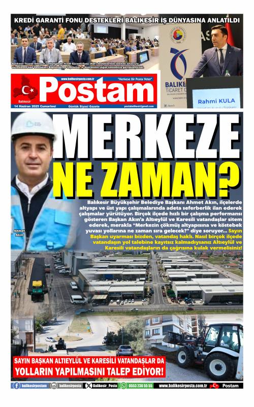 Balıkesir Büyükşehir Belediye Başkanı Ahmet Akın, ilçelerde altyapı ve üst yapı çalışmalarında adeta seferberlik ilan ederek çalışmalar yürütüyor. Birçok ilçede hızlı bir çalışma performansı gösteren Başkan Akın’a Altıeylül ve Karesili vatandaşlar sitem ederek, merakla “Merkezin çökmüş altyapısına ve köstebek yuvası yollarına ne zaman sıra gelecek?” diye soruyor… Sayın Başkan uyarması bizden, vatandaş haklı. Nasıl birçok ilçede vatandaşın yol talebine kayıtsız kalmadıysanız Altıeylül ve Karesili vatandaşların da çağrısına kulak vermelisiniz!