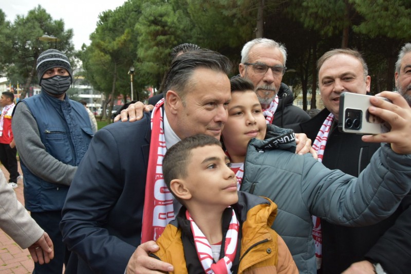 Balıkesirspor – Orduspor1967 karşılaşması öncesinde 75. Yıl Parkı’nda 10KolikleR ile bir araya gelen Cumhur İttifakı adayı Eray, taraftarların sevgi gösterisi ile karşılandı.