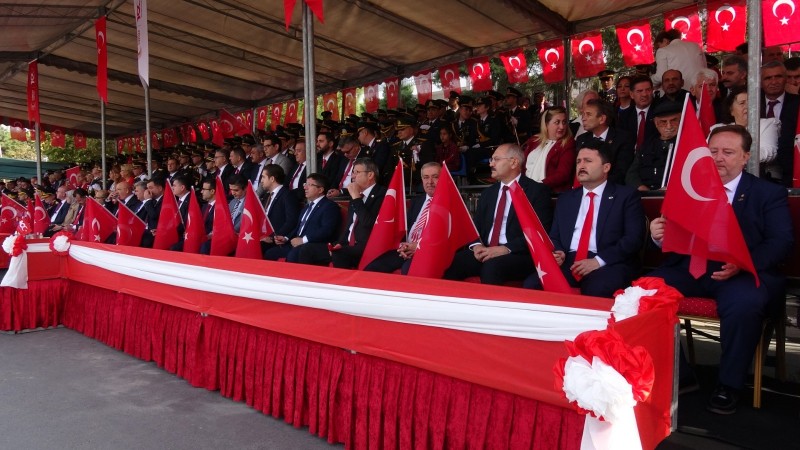 Vali Ustaoğlu, “Gazi Mustafa Kemal Atatürk'ün 29 Ekim 1923 tarihinde 'Türk milletinin tabiat ve şiarına en uygun idare cumhuriyet idaresidir' diyerek ilan ettiği Cumhuriyetimizin 100. yıl dönümünü kutlamanın coşkusunu ve heyecanını en önemlisi de gurur ve iftiharını hep birlikte yaşıyoruz. Cumhuriyetimiz 100 yıl önce bugün hakimiyet kayıtsız şartsız milletindir idare usulü halkın mukadderatını, geleceğini bizzat ve bir fiil idare etmesi esasına dayanır. 'Türkiye Devleti'nin hükümet şekli cumhuriyettir' ifadeleriyle ilan edilmiştir. Türkiye Cumhuriyeti milletimizin ortak eseridir. Bu nedenle ülkemiz aziz milletimiz için olduğu kadar, dünyanın mazlum ve mağdurları içinde bir umut ışığı olarak doğmuştur. Cumhuriyet bağımsızlığımızın sembolüdür” dedi. Vali Ustaoğlu’nun konuşmasının ardından öğrenciler tarafından hazırlanan şiir ve halk oyunları gösterileri sunuldu. Tören resmi geçit ile sona erdi. (İHA)