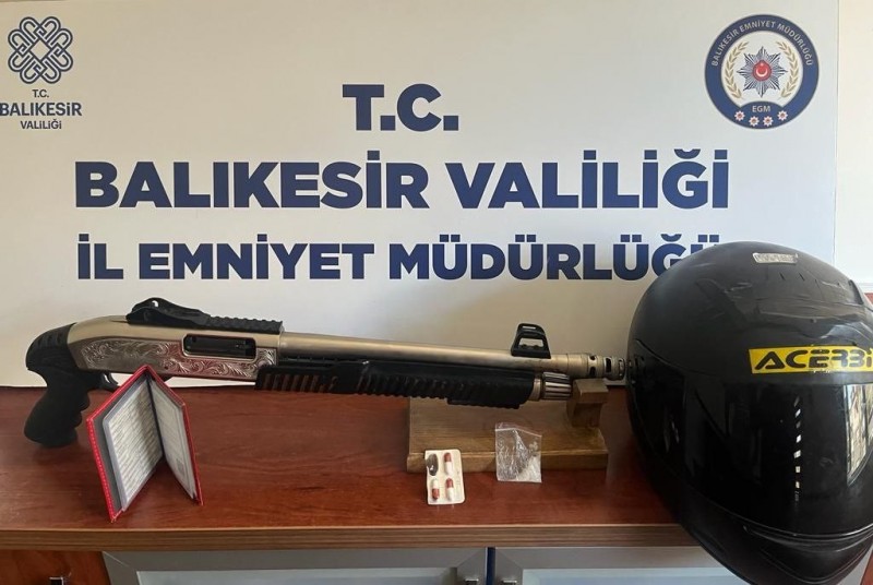 Edinilen bilgiye göre, Bandırma ilçesinde çaldığı motosiklet ile Bursa'ya giden Yusuf Aydın (24) çaldığı motosikleti satarak burada başka bir motosiklet çaldı. Çaldığı motosiklet ile tekrar Bandırma'ya dönen şahıs Bandırma İlçesi Emniyet Müdürlüğünün takibi sonucu Bursa'dan çaldığı motosiklet ile Bandırma'da bir ikamette üzerinde uyuşturucu madde ve pompalı tüfek ile birlikte Polis ekipleri tarafından gözaltına alındı. Savcılıkta yapılan işlemlerinin ardından şahıs tutuklanarak cezaevine gönderildi. (İHA)