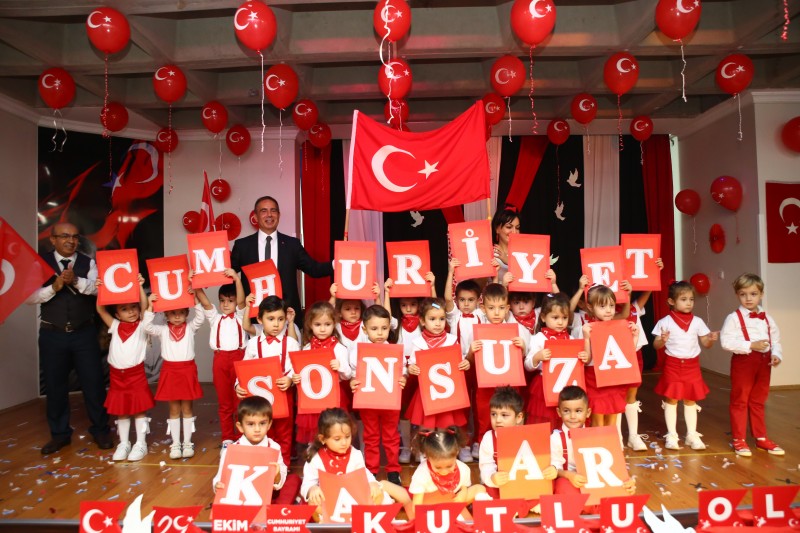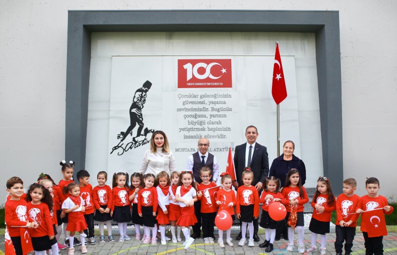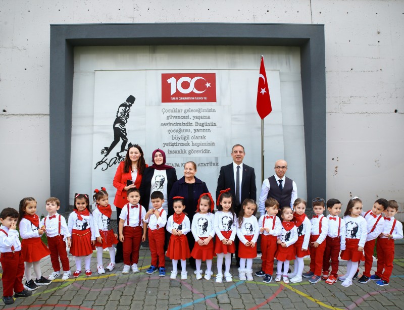 Naciye Kabakçı Anaokulunda öğretmen ve öğrenciler tarafından özel olarak dizayn ettirilerek yaptırılan Atatürk Anıtı, göz kamaştırdı.