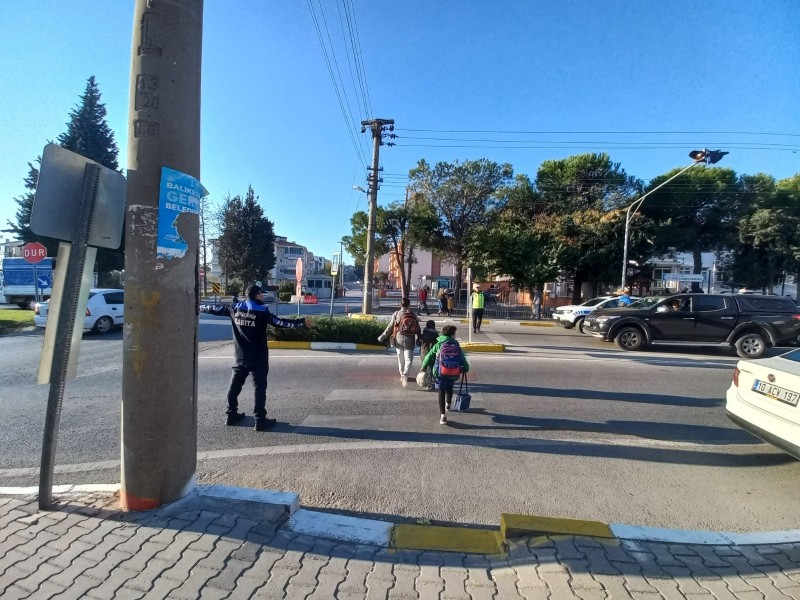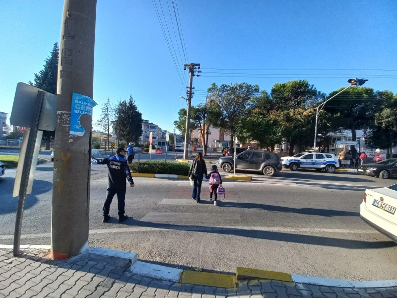 Balıkesir Büyükşehir Belediyesi Zabıta Daire Başkanlığına bağlı ekipler, öğrencilerin güvenli şekilde okullarına gidip gelmesini sağlamak amacıyla okul önlerinde denetim yaptı.