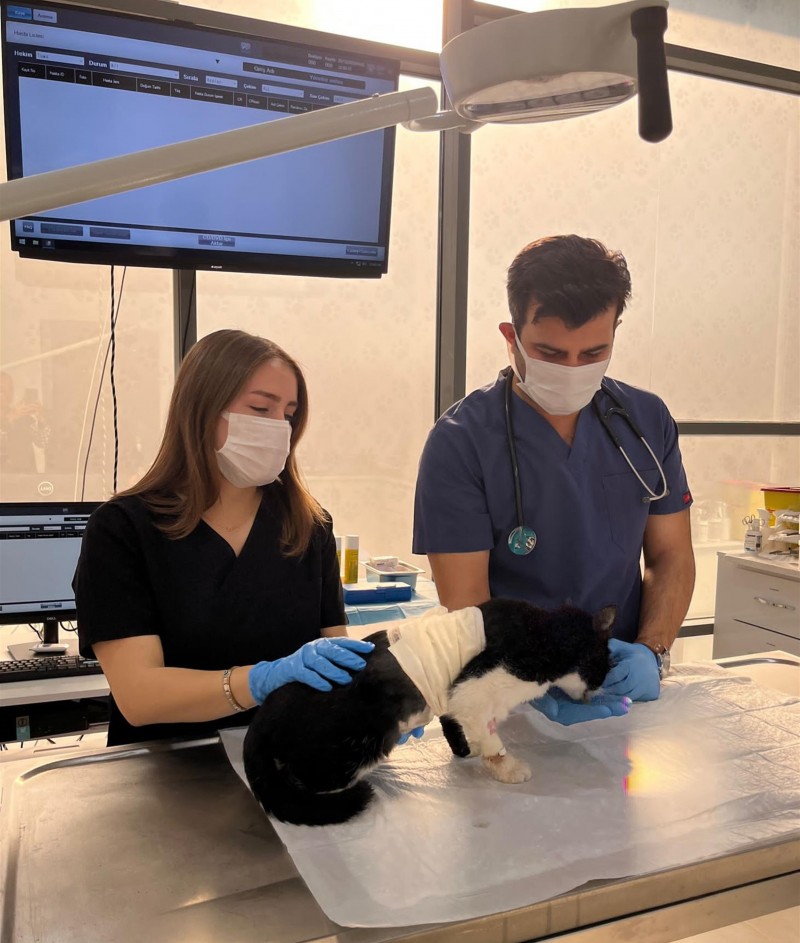 2 adet olta iğnesi yutan sokak kedisinin tedavisi, Balıkesir Büyükşehir Belediyesi Bandırma Sokak Hayvanları Tedavi Merkezi’nde büyük bir özenle sürüyor. Başarılı bir operasyonla midesindeki olta iğnelerini çıkaran veteriner hekimler; ayağa kalkabilen kediyi, oltaların mideye verdiği zarardan dolayı hayati tehlikesi sürdüğü için yoğun bakımda gözlem altında tutuyor.
