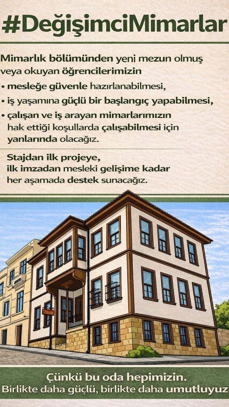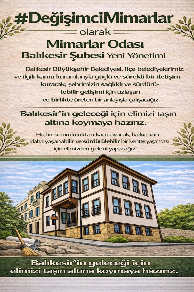 Şahin, mimarlık bölümünden yeni mezun olmuş ya da öğrenimine devam eden öğrencilerin mesleğe güvenle hazırlanabilmesi ve iş yaşamına güçlü bir başlangıç yapabilmesi için destek olunacağı vurgulandı. Çalışan ve iş arayan mimarların hak ettiği koşullarda çalışabilmesi için yanlarında olunacağı ifade etti.“Balıkesir’in geleceği için elimizi taşın altına koymaya hazırız” sözlerini vurguladı..