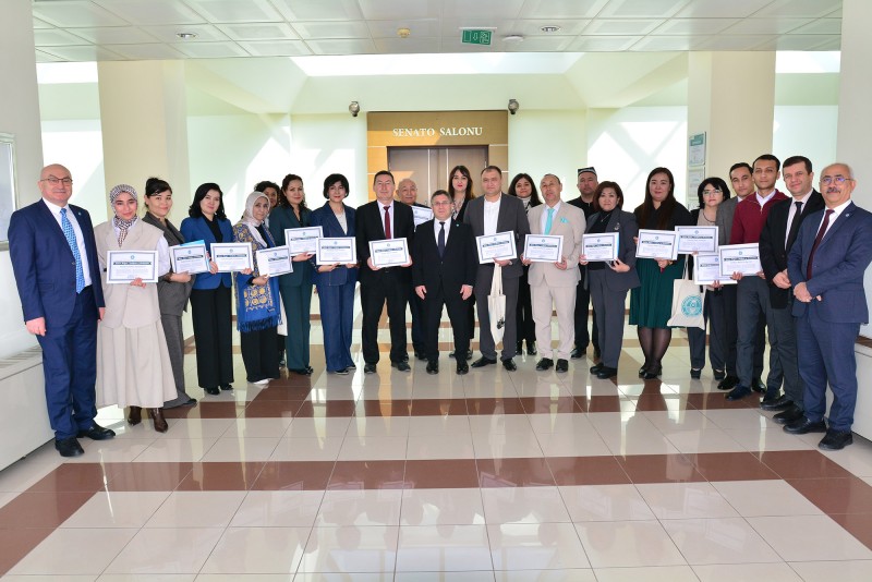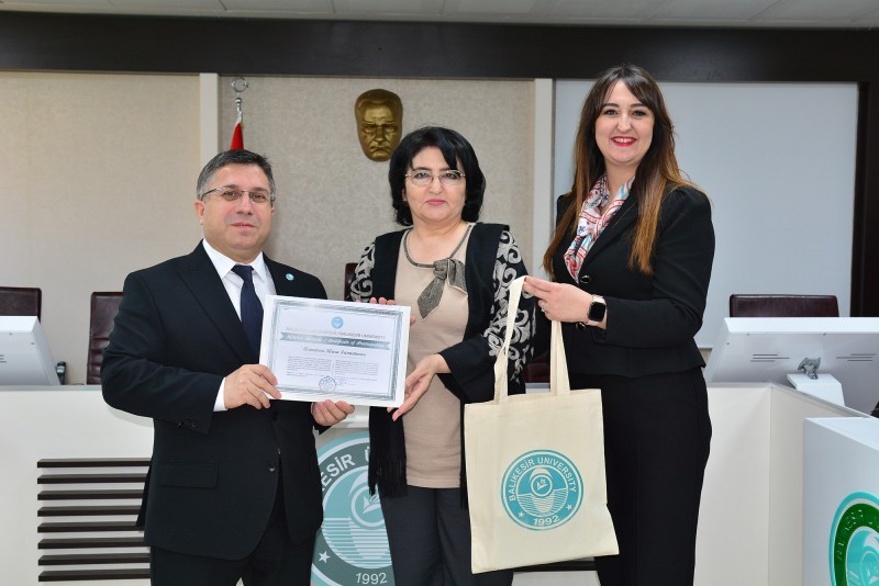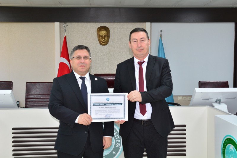 Özbekistan Rönesans Eğitim Üniversitesi akademisyenleri, bir dizi temas ve incelemede bulunmak üzere Balıkesir Üniversitesinde düzenlenen akademik faaliyetlerini tamamladı. Konuk akademisyenler, Rektörlük Senato Salonu’nda Balıkesir Üniversitesi Rektörü Prof. Dr. Yücel Oğurlu ile Rektör Yardımcıları Prof. Dr. Cevdet Avcıkurt, Prof. Dr. Murat Doğdubay ve Prof. Dr. Fatih Satıl’ın katılımıyla gerçekleştirilen törende sertifikalarını aldı.