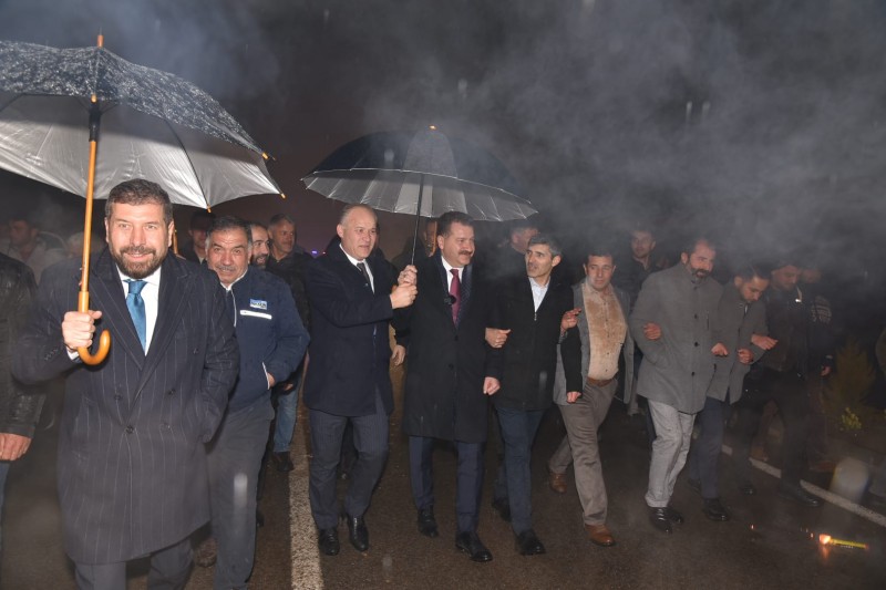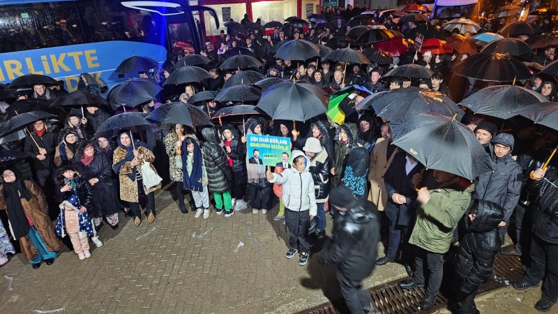 Yüzlerce aracın katıldığı konvoy, meşaleler ve hava-i fişeklerle aydınlanan gece, vatandaşların samimi ve sıcak karşılamasıyla coşku dolu anlara sahne oldu.