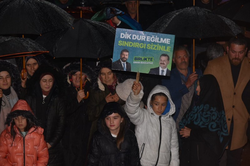 Yüreğil ve Yaylabayır mahallelerini ziyaret eden Cumhur İttifakı başkanları Yücel Yılmaz ve Ekrem Yavaş, yağmura rağmen yüzlerce vatandaş tarafından sıcak bir karşılama ile karşılandı. Mahalle ziyaretleri adeta bir miting alanına dönüştü. AK Parti'nin "Beraber Islanalım" sloganı, yağan yağmur altında Sındırgı'da fotoğraf karelerine yansıdı. Yaşlısından gencine tüm vatandaşlar, yağmura aldırış etmeksizin coşkuya ortak oldu.