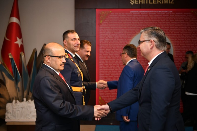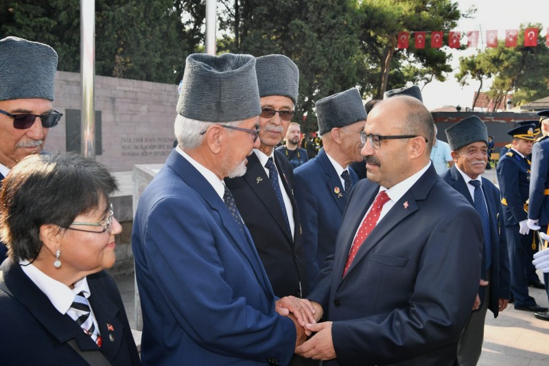 Çelenk Sunma Töreninin ardından Vali İsmail Ustaoğlu beraberinde Garnizon Komutanı ve 9’uncu Ana Jet Üs Komutanı Hv.Plt.Tuğg. Cihangir Kemal Yüzçelik ve Büyükşehir Belediye Başkanı Yücel Yılmaz ile birlikte Valilik Kuvâ-yi Milliye Salonunda 30 Ağustos Zafer Bayramı tebriklerini kabul etti.