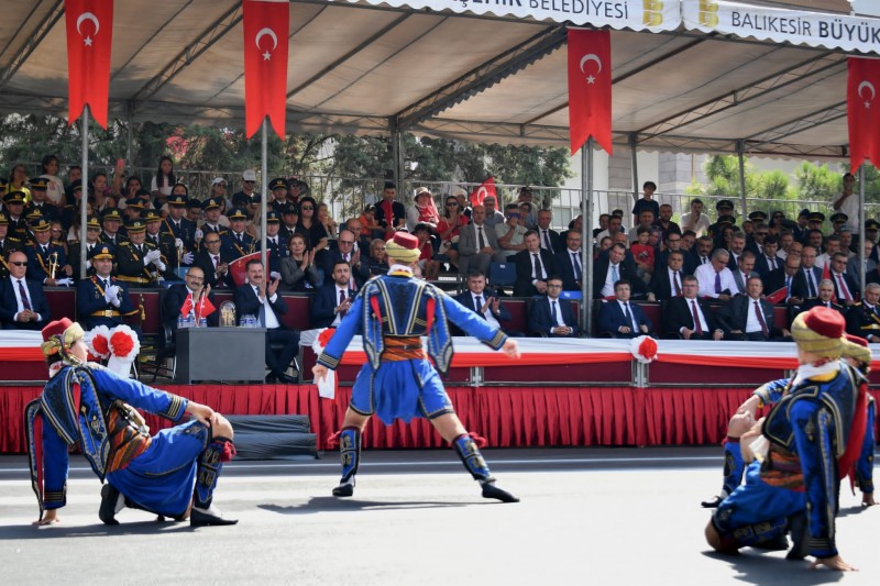 Saygı duruşu ve İstiklal Marşı'nın ardından Cumhurbaşkanı Sayın Recep Tayyip Erdoğan'ın günün anlam ve önemine ilişkin mesajı okundu. Daha sonra Hava Savunma Binbaşı Mustafa Sağlam Türk tarihinin en önemli dönüm noktalarından biri olan 30 Ağustos Zaferinin anlam ve önemini belirten konuşma yaptı. Al bayrakların coşkuya ortak olduğu törende daha sonra Albay Cafer Tayyar Nuran Oğuz Anadolu Lisesi öğrencisi Ecem Karakılıç "Bu Vatan Kimin?” ve Gençlik Merkezi Gönüllü Genci Burak Salman “30 Ağustos” isimli şiirleriyle büyük alkış aldı. 15 Temmuz Şehitler Anadolu Lisesi halk oyunları ekibinin ilgiyle izlenen gösterisinin yanı sıra program kapsamında Balıkesir Bakım, Mühimmat Okulu ve Eğitim Merkezi Bölge Bandosu da müzik dinletisi gerçekleştirdi. Katılımcıların bayraklarla eşlik ettiği dinletinin ardından 30 Ağustos Zafer Bayramı Kutlama Programı geçit töreni ile sona erdi. (Balıkesir Valiliği)