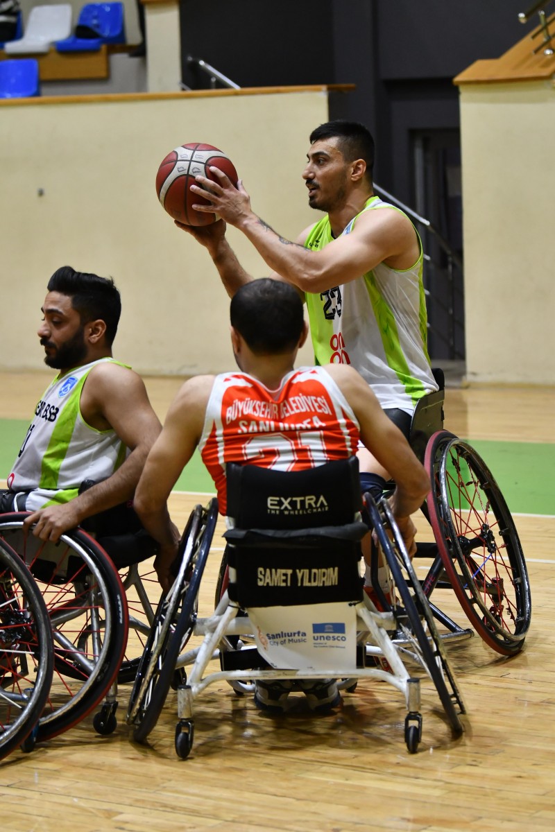 Tekerlekli Sandalye Basketbol Süper Ligi’nin 3. haftasında Balıkesir Büyükşehir Belediyespor, Alparslan Türkeş Spor Salonu’nda Şanlıurfa Büyükşehir Belediyespor’u ağırladı. Mavi-yeşilliler, Mohammed Hassan Sayari’nin sayılarıyla ilk çeyreği 18-16 önde tamamladı. Mohammed Hassan Sayari ve Mehdi Ghorbani’nin sayılarıyla ikinci çeyreğe hızlı giriş yapan Balıkesir temsilcisi, farkı giderek açtı. Müsabakanın ilk yarısı 43-28 sonuçlandı. Dengeli geçen üçüncü çeyrekte iki takımda eşit sayı attı. Periyot sonucu 23-23 sonuçlanan müsabakanın karar çeyreğine 66-51’le geçildi. Son çeyrekte üstünlüğünü koruyan Balıkesir Büyükşehir Belediyespor, 88-67’lık skorla galibiyete uzandı. Mavi-yeşillilerde Mohammed Hassan Sayari 45 sayıyla takımının ve müsabakanın en skorer ismi olurken, Mehdi Ghorbani 28, Muhterem Aktaş 6 sayıyla mücadeleyi noktaladı.