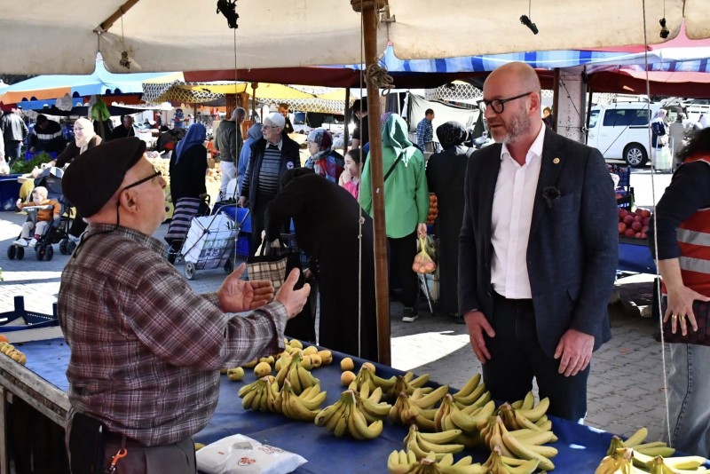 CHP Balıkesir Milletvekili Serkan Sarı, CHP Karesi İlçe Başkanı Yücel Erişen, ilçe yöneticileri ve BBB Merkez Koordinatörü Nurullah Barış Almar ile birlikte Sakarya Mahallesi’nde kurulan semt pazarını ziyaret etti.