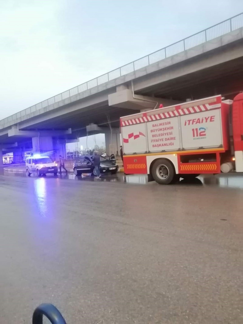 Bandırma ilçesinde sabah saatlerinde seyir halindeki binek otomobil alev aldı.