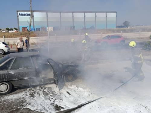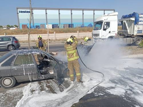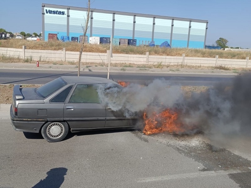 Balıkesir’in Bandırma ilçesinde seyir halindeyken alev alan otomobil, itfaiye ekipleri tarafından söndürüldü.