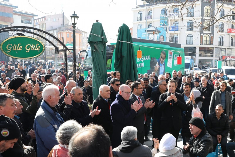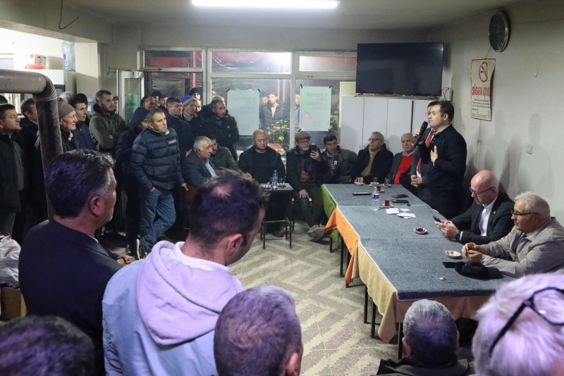 İlçe esnafını ziyaret edip hayırlı işler dileklerini ileten Ahmet Akın, Köylü Pazarı ile Kapalı Pazar Yeri’nde vatandaşlarla bir araya geldi. Pazar alışverişi yapan Sındırgılılar ve pazar esnafıyla sohbet eden Ahmet Akın, buradan Sındırgı Sanayi Sitesi’ne geçti. Sanayi’deki işletmeleri tek tek ziyaret ederek sorun ve talepleri dinleyen Akın, molaya çıkan esnafın istirahat ettiği kıraathanelerde Sındırgılı hemşerileriyle sohbet etti. Ahmet Akın, Sındırgı ziyaretini kırsal mahallelerde gerçekleştirdiği halk buluşmalarıyla sürdürdü. Akın Sındırgı’ya bağlı Işıklar ve Yüreğil kırsal mahallelerinde heyecanla karşılandı. İlçede istihdam oluşturmak için yatırım yapmak isteyen yatırımcıların geçmişte önlendiğini, 1 Nisan’dan sonra Sındırgı’da iş alanı oluşturacak ama tarıma, hayvancılığa zarar vermeyecek tüm yatırımların önünün açılacağını belirten Akın, “Yüreğil kornişon diyarı. Fakat sizin ürettiğiniz kornişondan esas parayı başkaları kazanıyor. Ne yapacağız? El ele vereceğiz, uluslararası fonlardan hibeleri alıp turşuyu burada beraber üreteceğimiz tesisleri kuracağız. Sonra da bunu dünyaya satacağız” dedi. Kıraathanelerdeki buluşmalarda kırsalda hayata geçecek olan uygulamaları anlatan Akın’ın konuşmaları büyük alkış aldı.