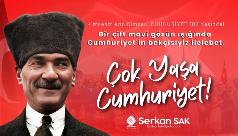 Sındırgı Belediye Başkanı Serkan Sak, 29 Ekim Cumhuriyet Bayramı dolayısıyla yayımladığı kutlama mesajında şu ifadelere yer verdi: