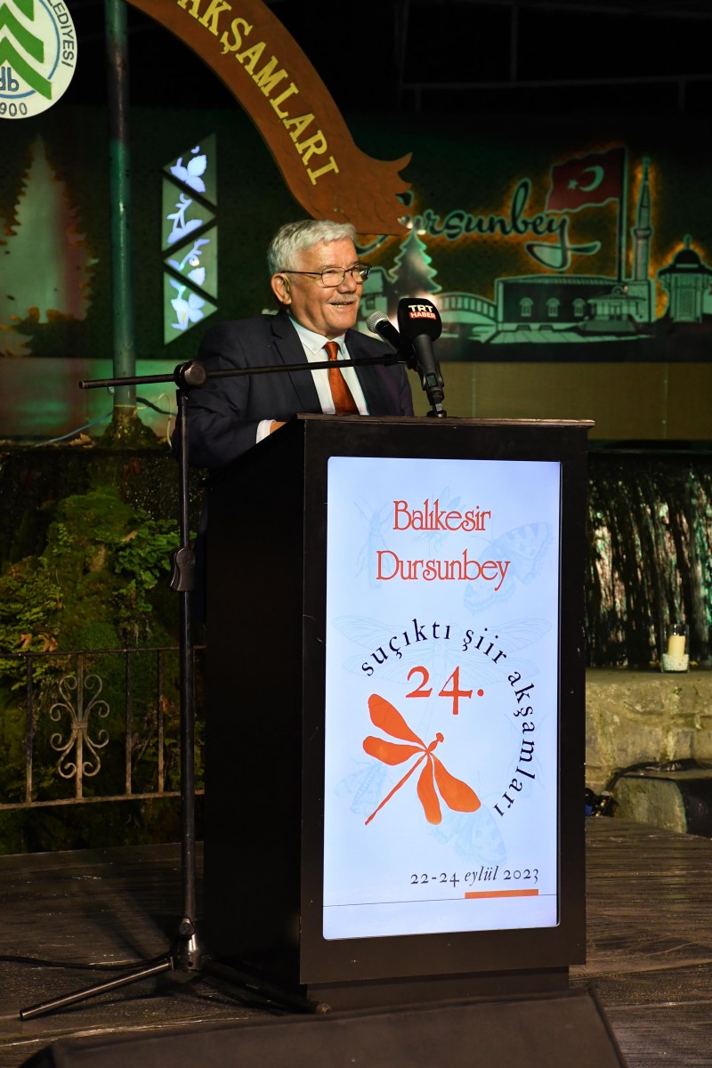 1993 yılında Dursunbey Suçıktı Mesire Alanı’nda Türk şiirinin önemli üstatlarının şiirler okumasıyla başlayan ve bu yıl 24.’cüsü düzenlenen şiir akşamlarında bulunmaktan büyük mutluluk duyduğunu dile getiren Balıkesir Millet Kütüphanesi kurucusu Ahmet Kot “Şiirden fazla her söz teferruattır” diyerek sözü şairlere bıraktı.