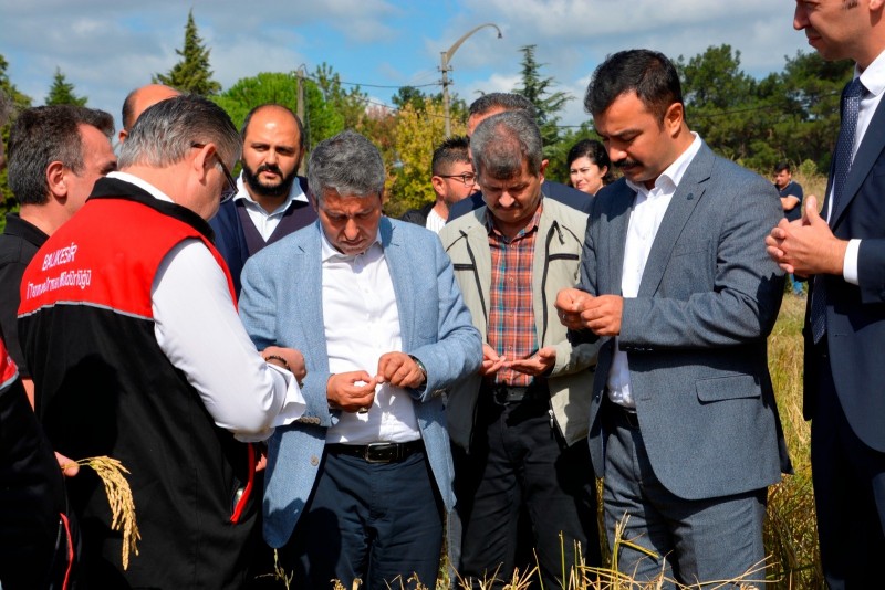Savaştepe’de ilk defa damlama sulama yöntemiyle çeltik yetiştirildi. Tarım Meslek Lisesine ait arazilere ekilen, yüzde 75 su tasarrufu edilerek üretilen çeltik; dönüm başına 300 kg ürün verdi.