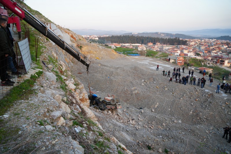 Balıkesir’in Edremit ilçesinde geri manevra yaparken 20 metrelik şarampole yuvarlanan traktörün sürücüsü hayatını kaybetti.